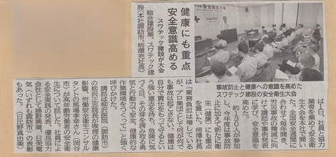 そのために7月の安全衛生大会では産業医の柳沢医院・院長、柳澤正志先生にきていただき「タバコの害、真剣に考えたことありますか?」というテーマでお話をしていただきました。