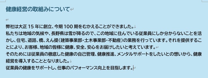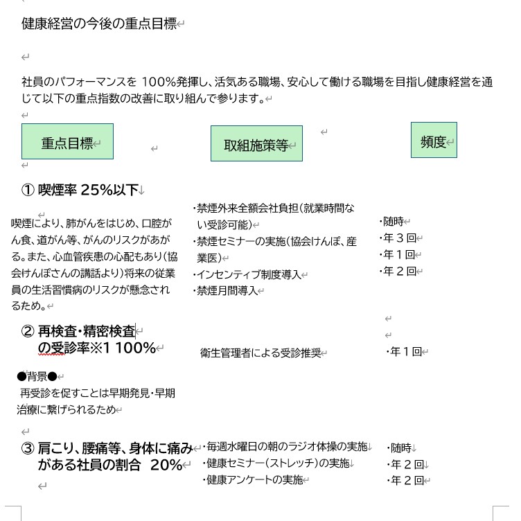 健康経営への取組み 2025年10月17日 弊社、スワテック建設株式会社は以前健康宣言を掲載させていただきました。 取組みについてもご紹介します。 ※1 定期健康診断の結果で、再検査・精密検査と判定の合った社員対象 一覧に戻る