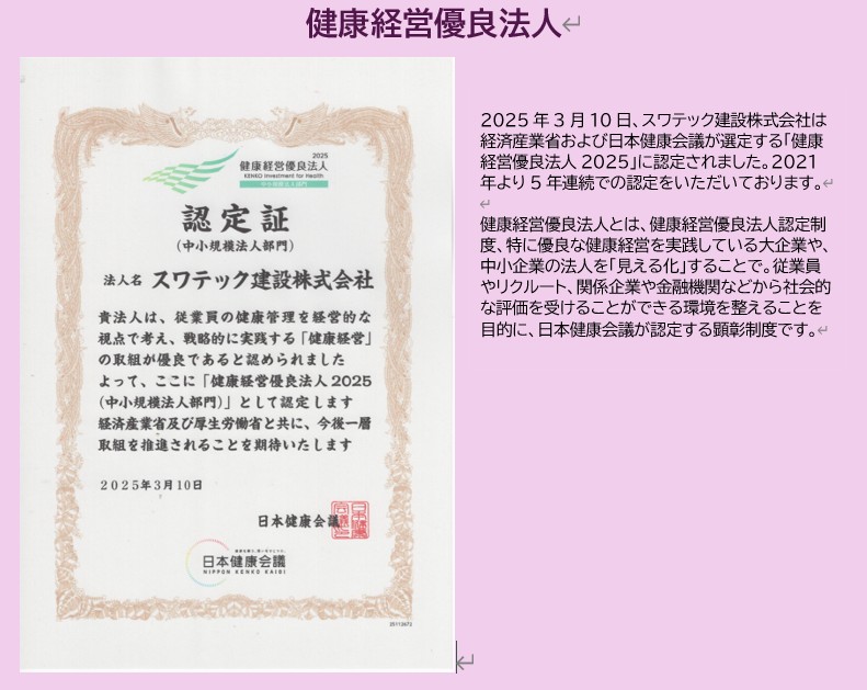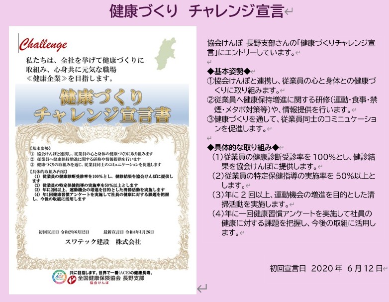 弊社、スワテック建設株式会社は以前健康宣言を掲載させていただきました。