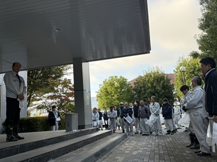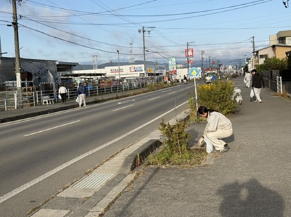 範囲を決め、班ごとに行いました。朝、挨拶をしていただいた近隣の学生さん、会社へ出社される方、