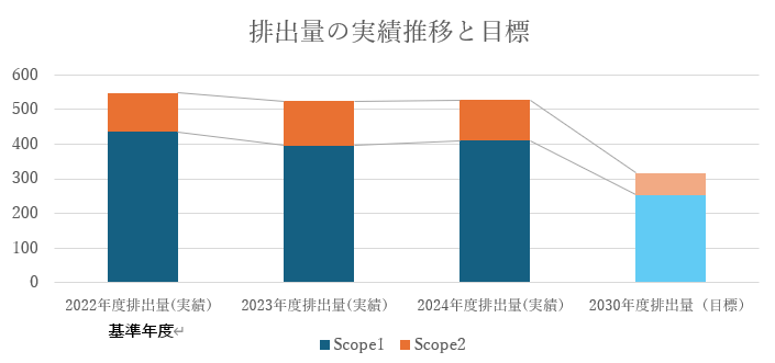 当社は、化石燃料の使用による温室効果ガスの直接的な排出と、電力使用による間接的な排出を、2022年を基準として毎年4.2%以上削減し、2030年までに42%削減することを目指しています。この取り組みの一環として、昨年11月に「中小企業版SBT」という国際的な認証を取得し、科学的な根拠に基づいた削減計画を進めていきます。